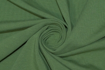 Тонкий трикотаж кулирка цвета хаки с добавлением лайкры. Ткань - хорошо растягивается в ширину и практически не тянется в длину, лайкра в составе повышает износоустойчивость, эластичность и формоустойчивость полотна. После стирки ткань не садится и не вытягивается. Трикотаж приятный на ощупь, гладкий, гигроскопичен - отлично впитывает влагу, прекрасно дышит, пропуская воздух. Из него получатся практичные и комфортные женские футболки с шортами или юбками, домашние халатики, пижамы, лёгкие открытые сарафаны и платья, легинсы, мужские футболки или рубашки с рукавом.