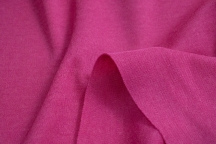 Итальянский шерстяной трикотаж-джерси очень яркого, насыщенного и трендового цвета фуксии. Ткань по плотности средняя, не очень плотная, плетение средней рыхлости, при растяжении может немного просвечивать, без растяжения, в покое не просвечивает. Поверхность ткани - матовая, не колется, но чувствуется шерсть при прикосновении, драпируется в мягкие, средние складки. Для трикотажных платьев, сарафанов, кофточек, кардиганов.