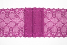 Эластичное кружево для шитья фиолетового цвета цвета - тонкое, хорошо растяжимое, с нежным ажурным узором. Комфортно прилегает к телу, не стесняет движения. Используется как декоративная вставка или как основной материал для пошива. Кружево подходит для различных предметов одежды, бельевых комплектов и неглиже, бюстье, маечек и боди, ночных сорочек и комбинаций, халатов с ажурной отделкой.