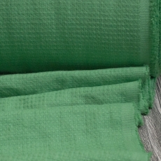 Мягкая льняная ткань с добавлением хлопка молочного цвета с очень легким светло-желтым с эффектом жатости и мятости, достигнутым путем специальной обработки - энзимной стирки. Ткань - очень приятная и мягкая на ощупь, плетение жаккардовое, немного рыхлое, поверхность фактурная с перпендикулярным переплетением нитей, за счёт обработки, полотно уменьшается в размере, но становится более объемным и воздушным, зефирным. Ткань идеальна для использования в качестве пледов и покрывал, полотенец как банных, так и стильных кухонных, банных и домашних халатов, штор.