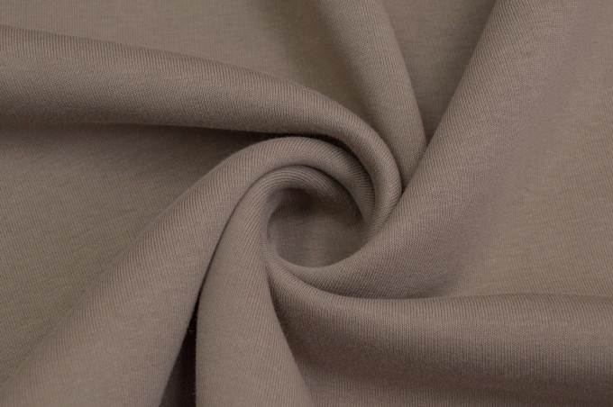Хорошего качества трикотаж футер в три нити с начёсом – наиболее плотный тип трикотажной ткани, имеющий с изнаночной стороны густой ворс, мягкий начёс, что делает его приятным для человеческого тела Мягчайший, плотный, комфортный и удобный в носке трикотаж будет незаменим в холодное время года в виде байки, свитшота, толстовки, тёплых спортивных брюк, тёплого спортивного костюма, детской одежды, а летом в виде верхней одежды. Ткань светлого цвета какао позволит создать не только комфортные, но и красивые изделия. Ткань немного тянется в ширину.